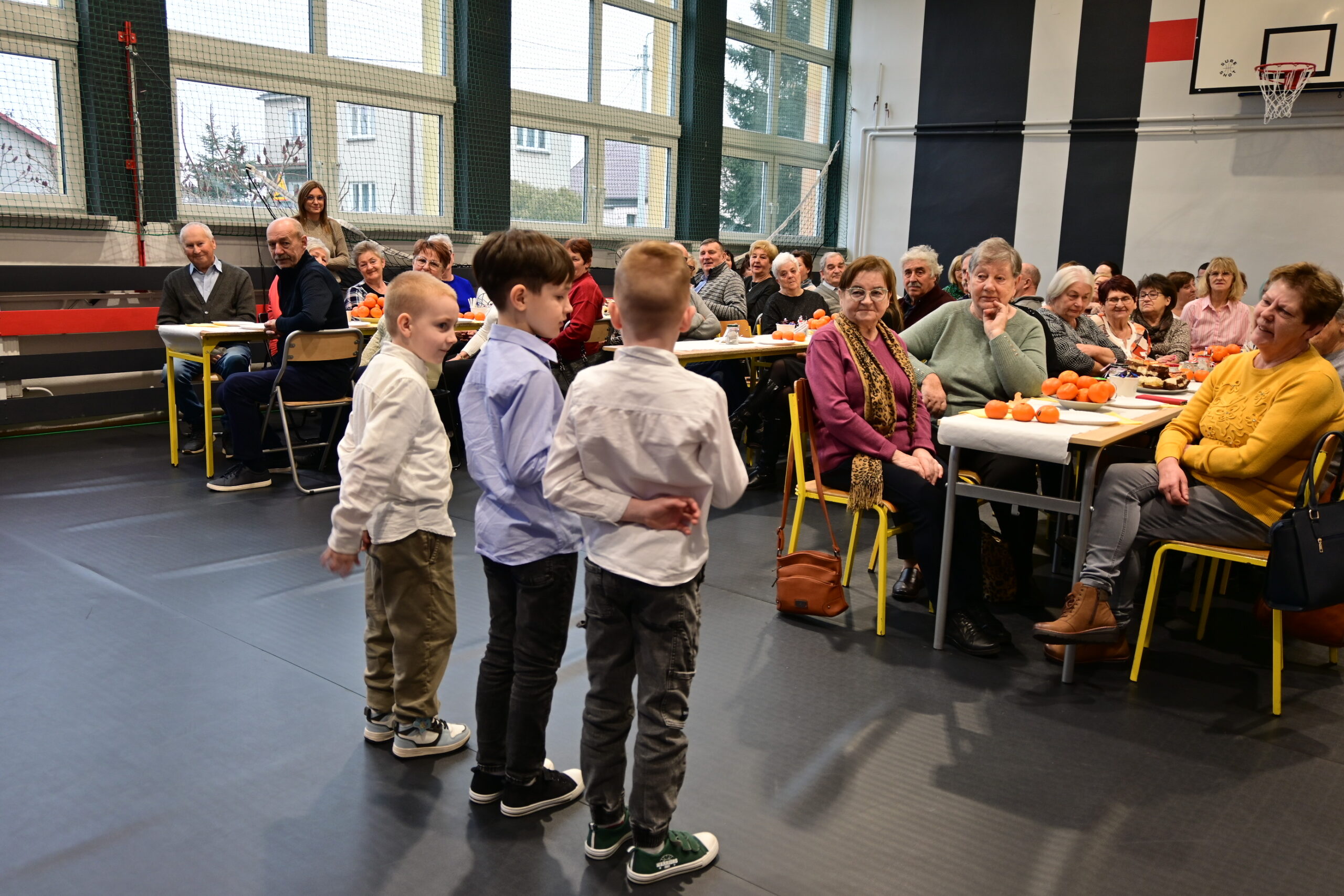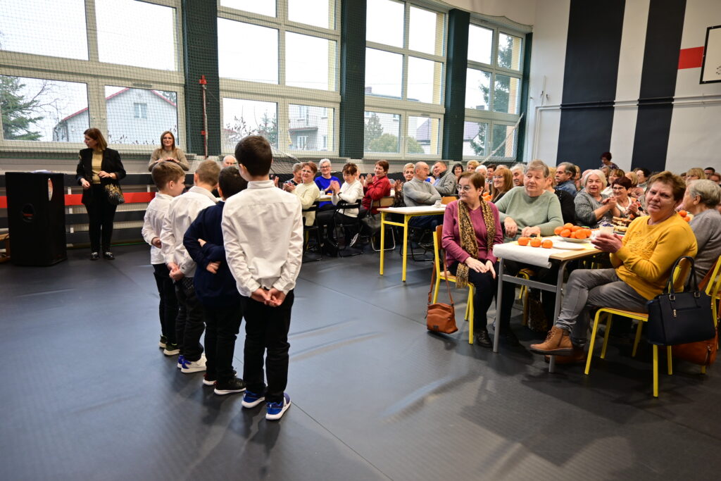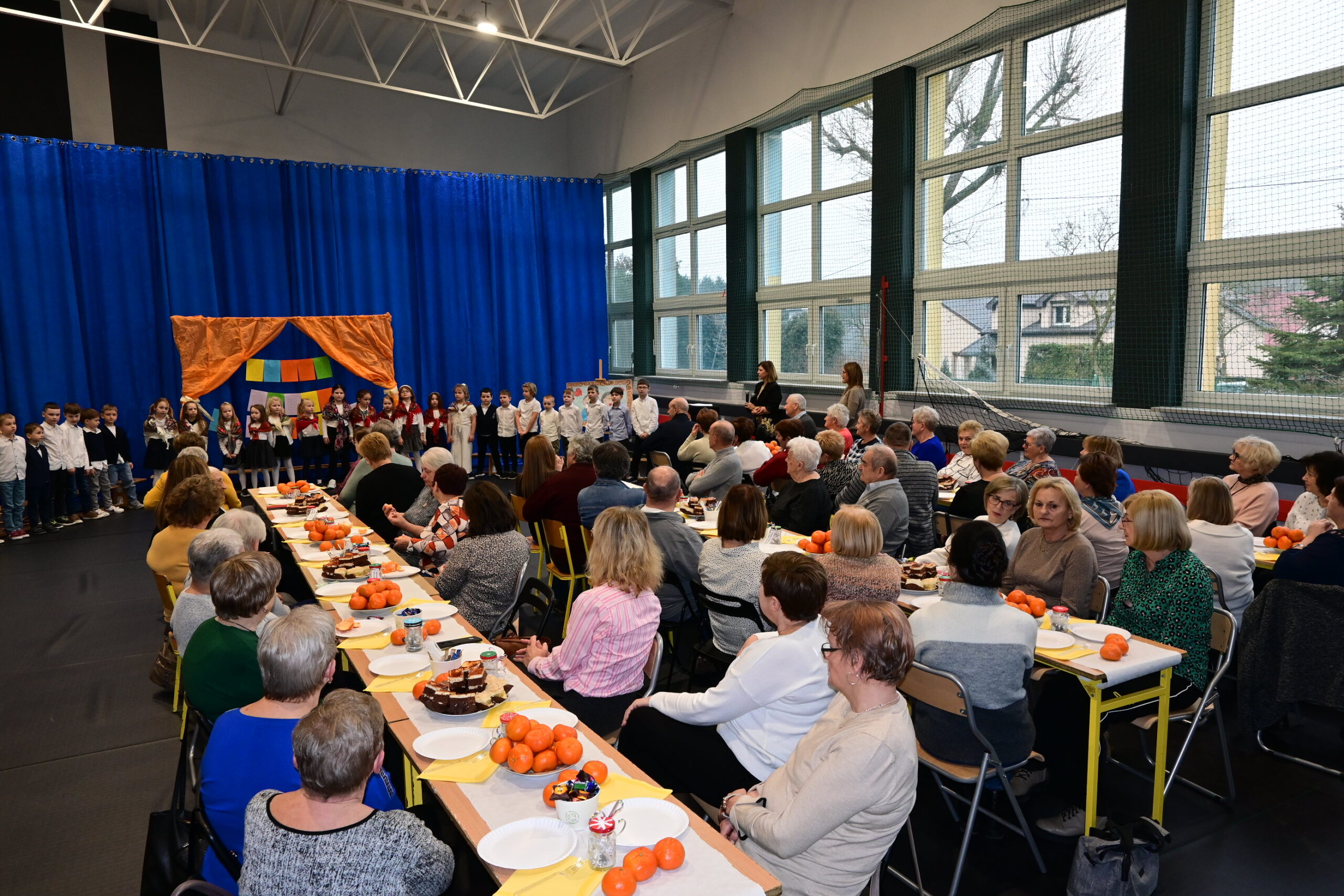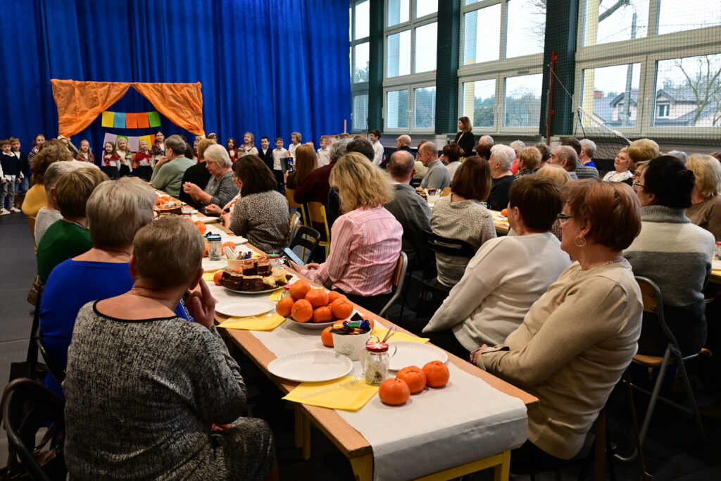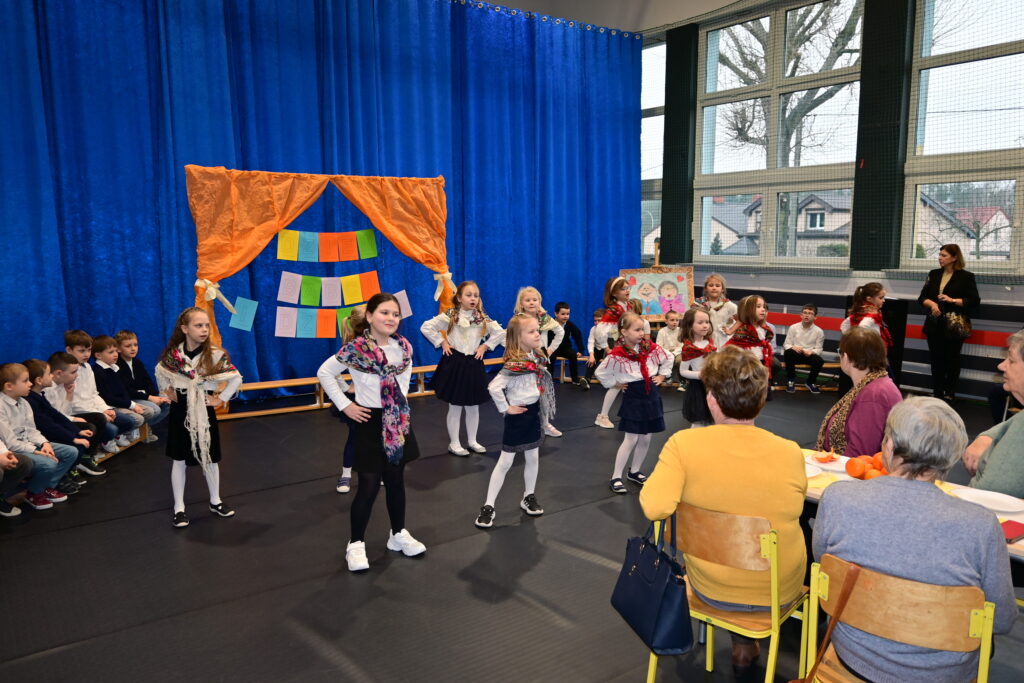 Dziś nasza szkoła gościła ,, Stowarzyszenie pod lasem”. Tradycją stało się, że z okazji Dnia Babci i Dziadka seniorzy spotykają się przy słodkim poczęstunku w budynku naszej szkoły. Tym razem z występem artystycznym na ludową nutę wystąpiły dzieci z klasy I A i I B. Wychowawczynie Aneta Strzałka i Justyna Adamczak przygotowały taki repertuar, w którym nie zabrakło piosenek biesiadnych. Wspólnie śpiewanie połączyło pokolenia. Gościem honorowym wydarzenia był wiceprezydent Mateusz Podsadny.