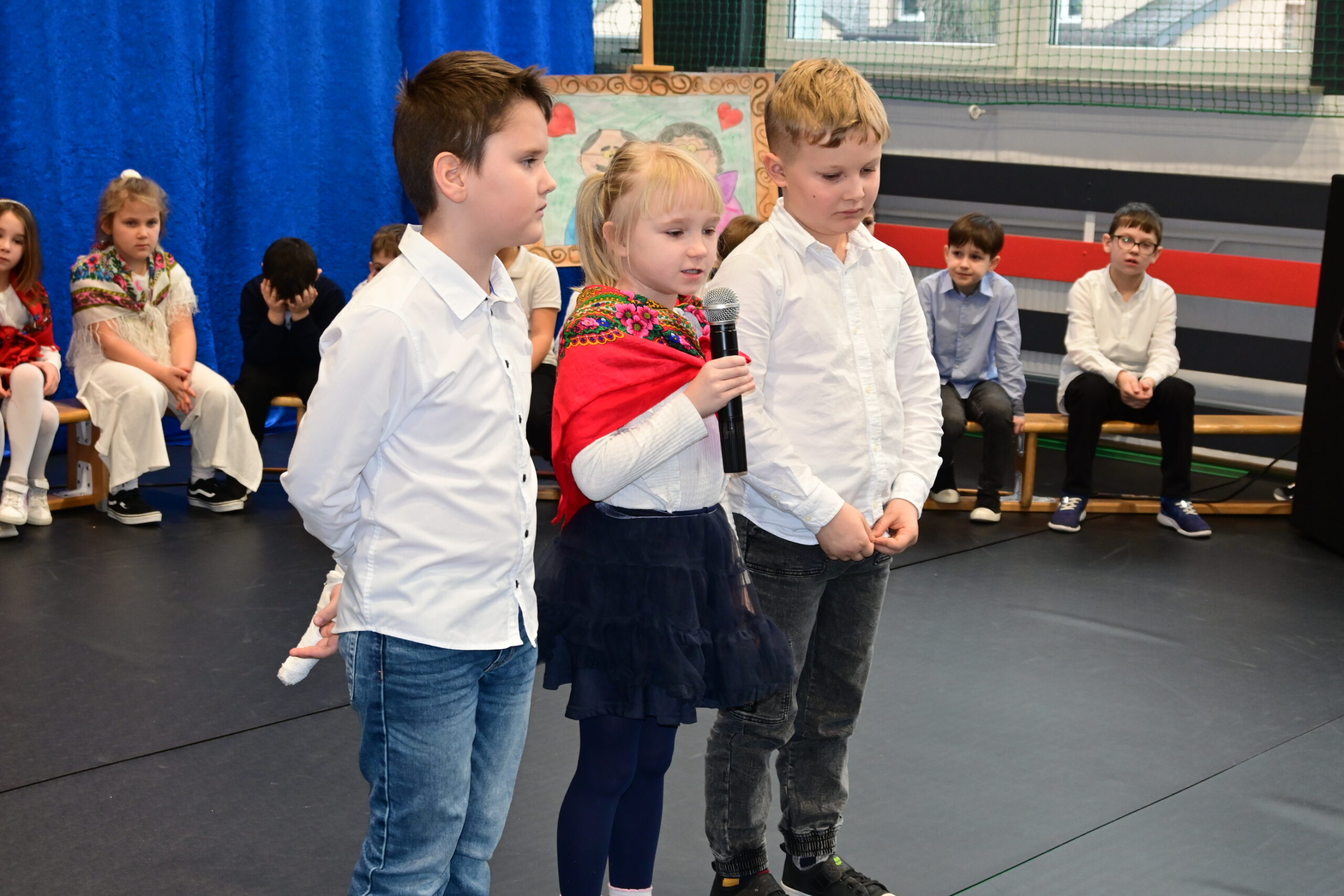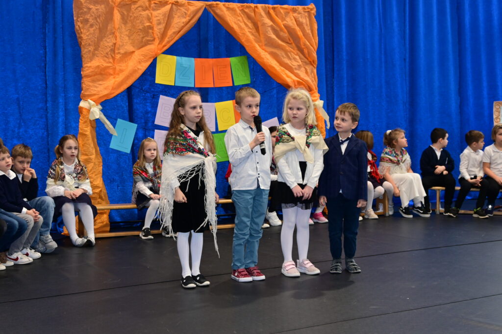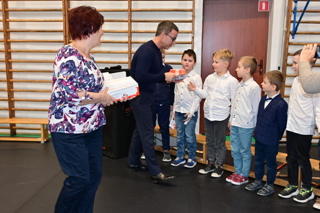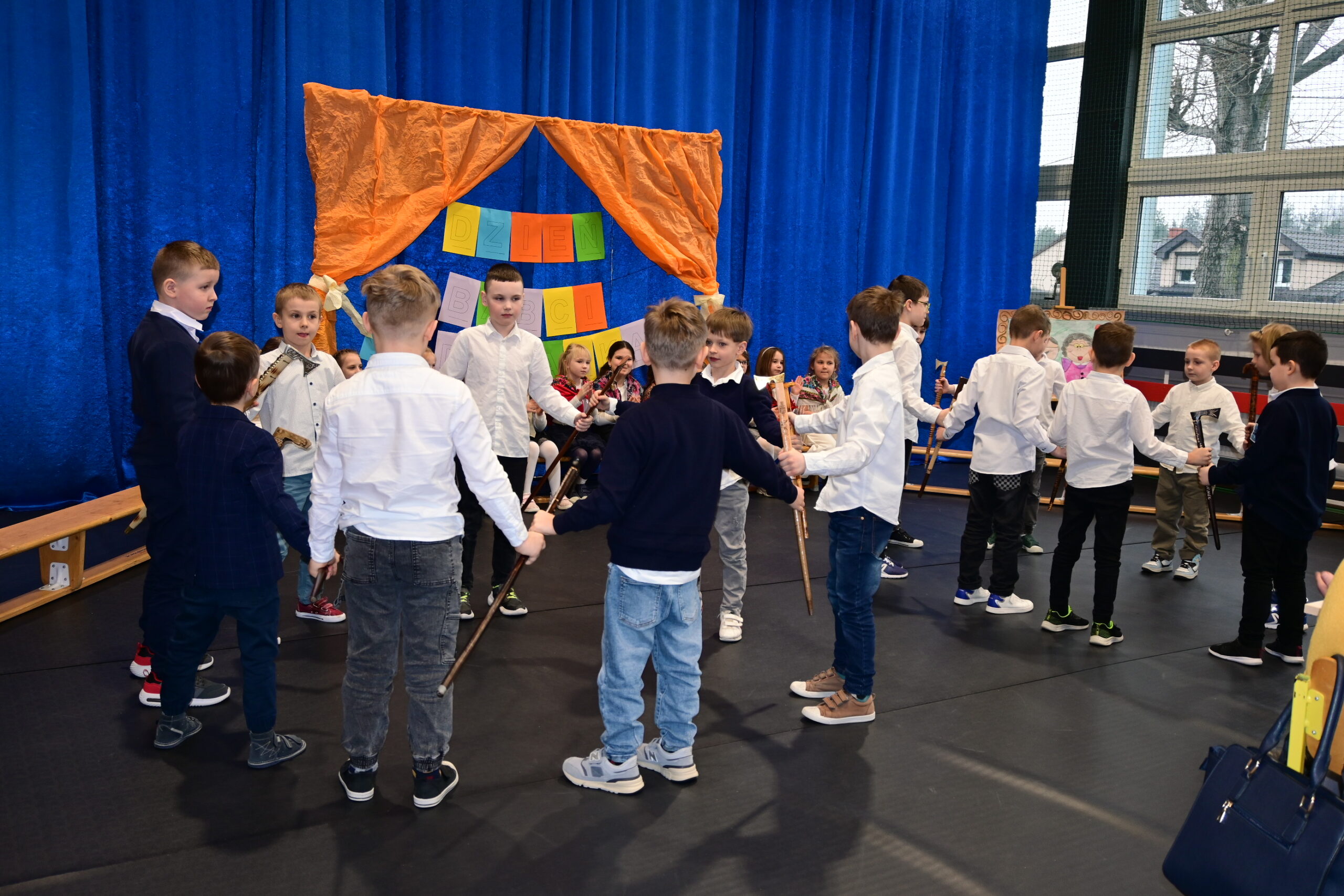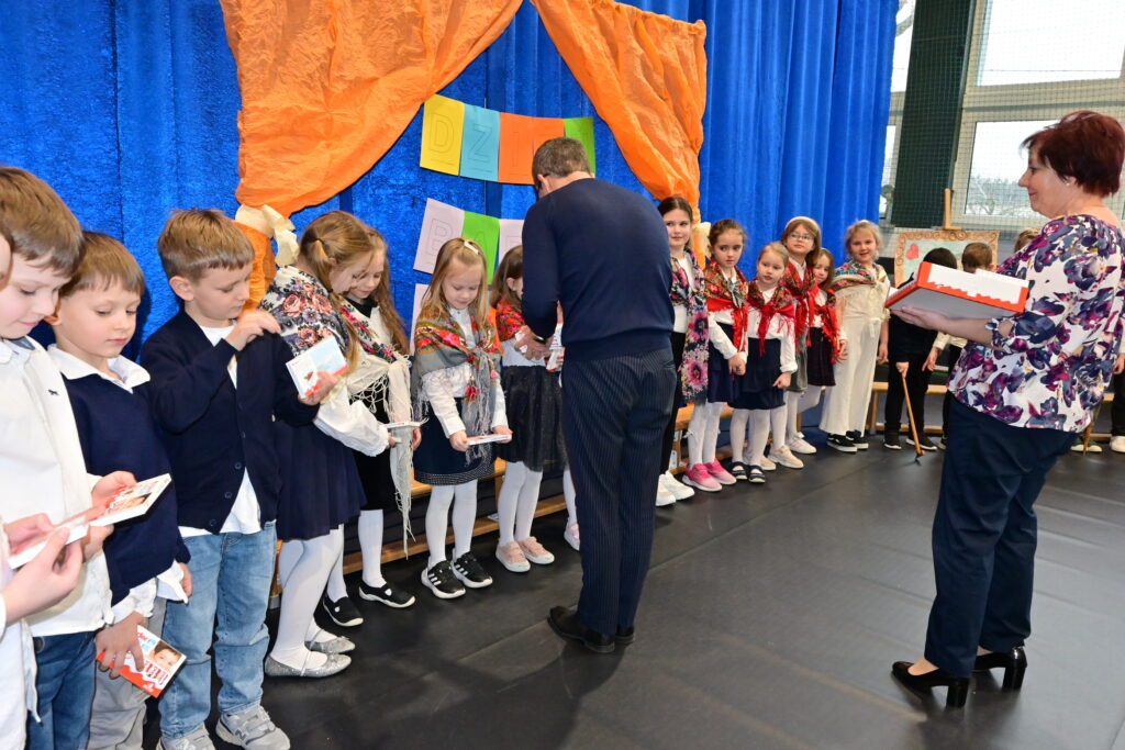 Dziś nasza szkoła gościła ,, Stowarzyszenie pod lasem”. Tradycją stało się, że z okazji Dnia Babci i Dziadka seniorzy spotykają się przy słodkim poczęstunku w budynku naszej szkoły. Tym razem z występem artystycznym na ludową nutę wystąpiły dzieci z klasy I A i I B. Wychowawczynie Aneta Strzałka i Justyna Adamczak przygotowały taki repertuar, w którym nie zabrakło piosenek biesiadnych. Wspólnie śpiewanie połączyło pokolenia. Gościem honorowym wydarzenia był wiceprezydent Mateusz Podsadny.